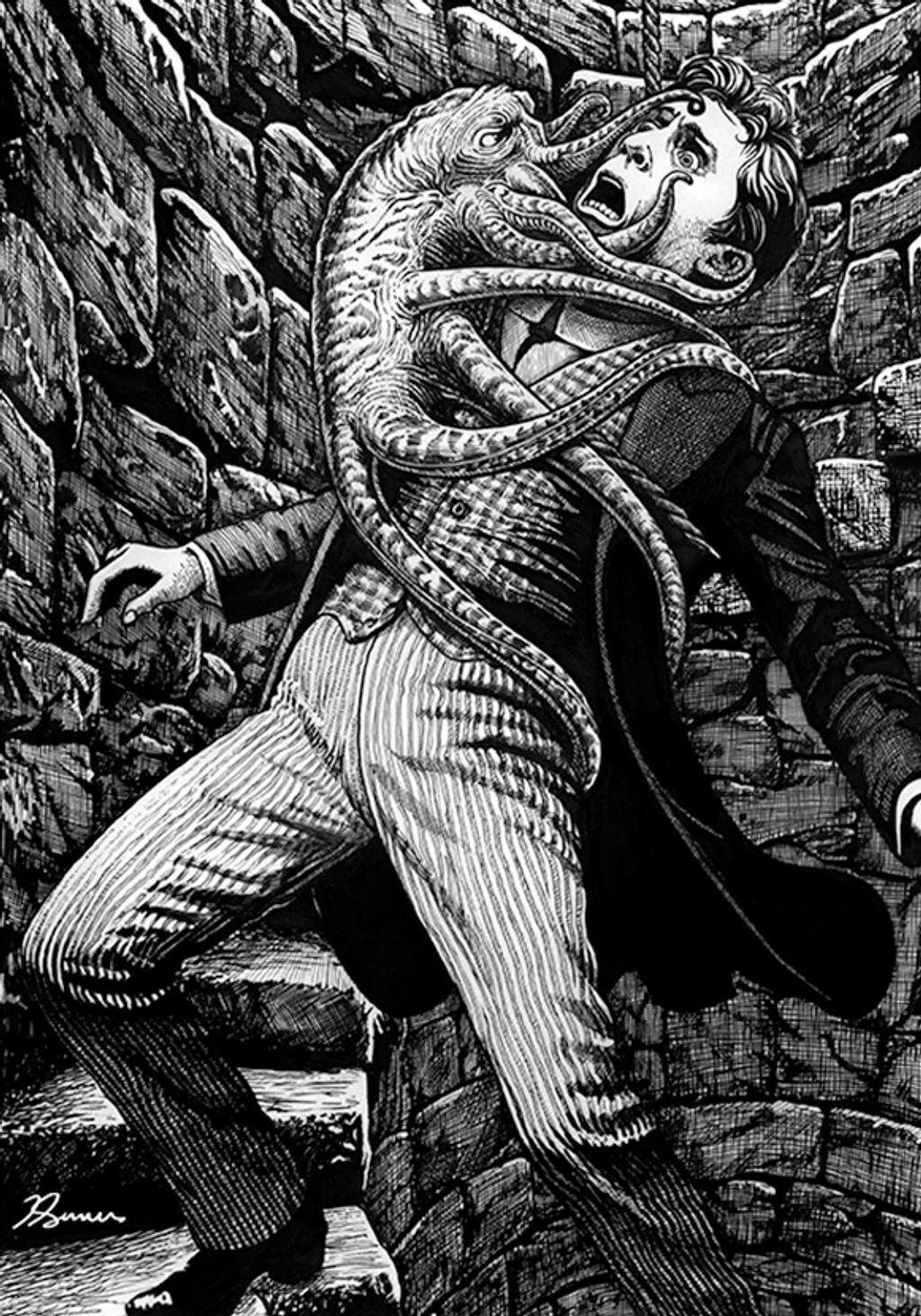 I was conscious of a most horrible smell of mould, and of a cold kind of face pressed against my own, and moving slowly over it, and of several—I don't know how many—legs or arms or tentacles or something clinging to my body.